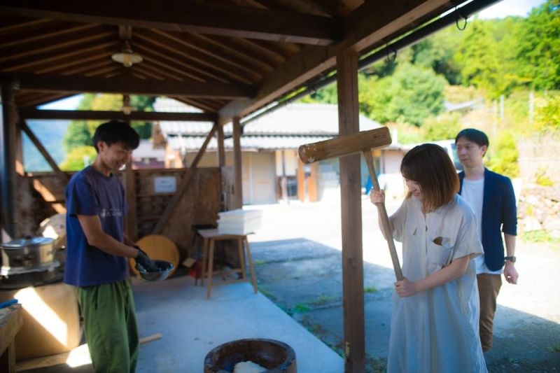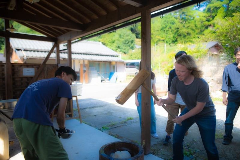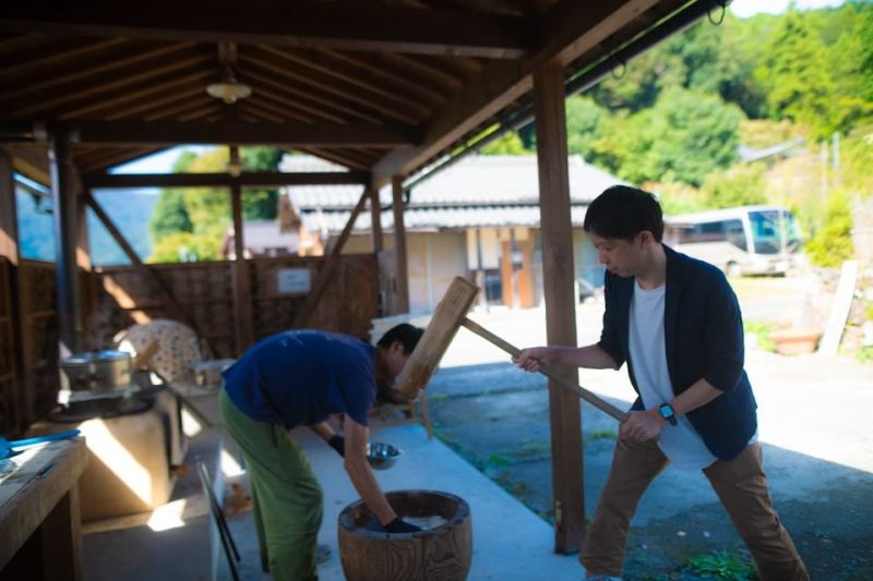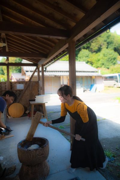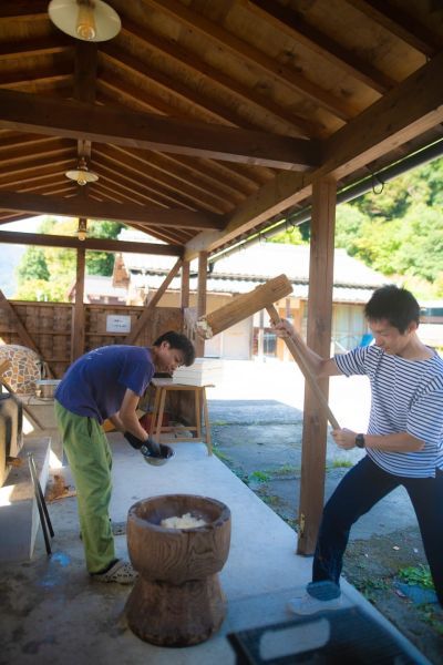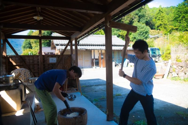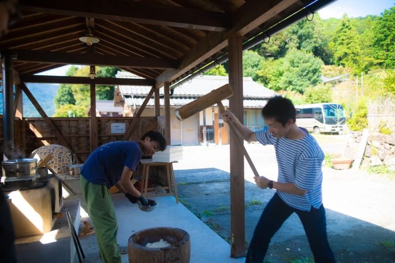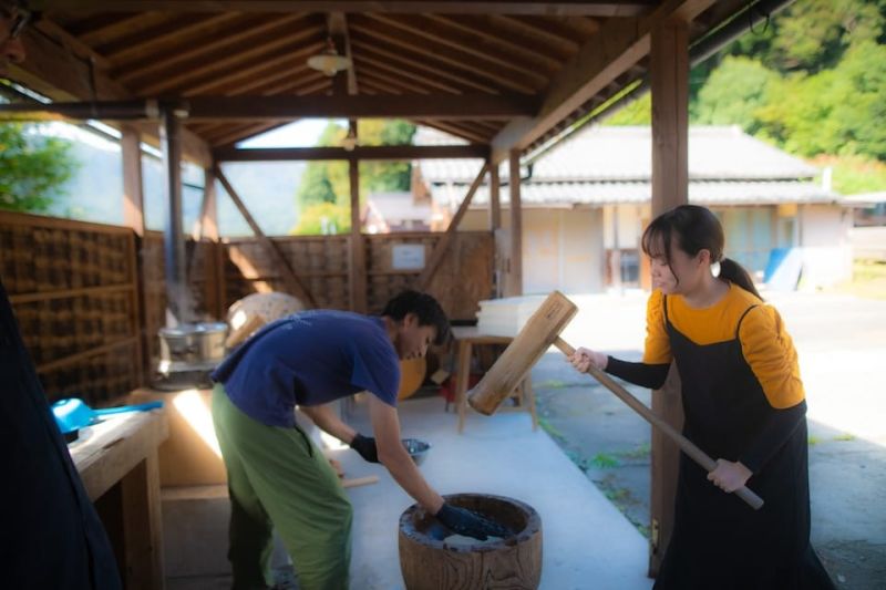 A day trip to Takashima Makino Town, on the northern tip of Lake Biwa, to enjoy mochi pounding, barbecuing, and local root vegetable stew in a 150-year-old traditional house.
