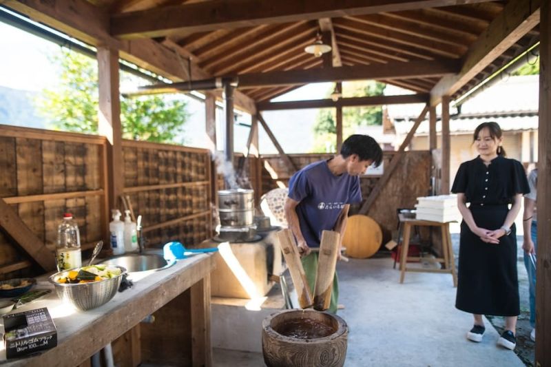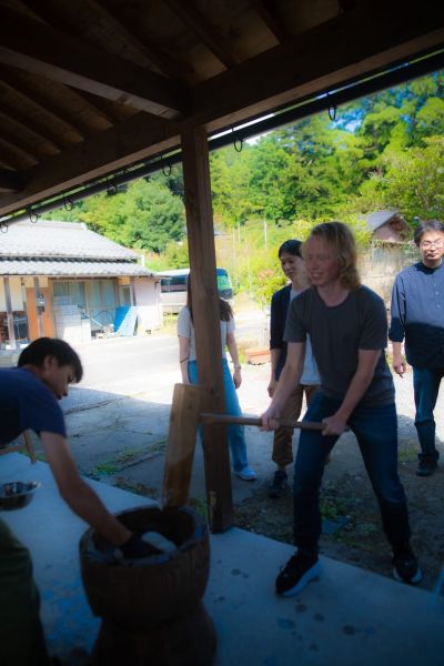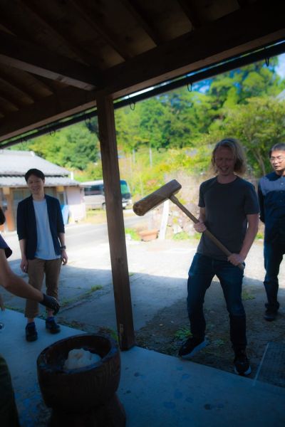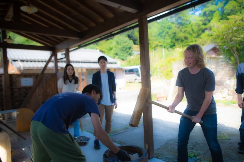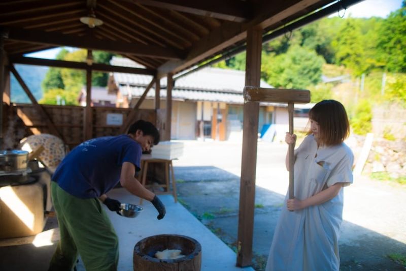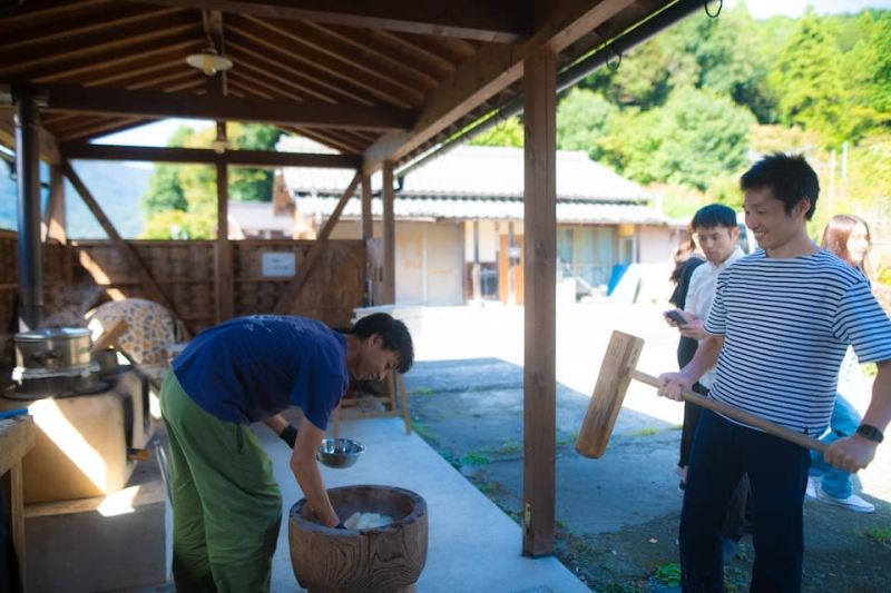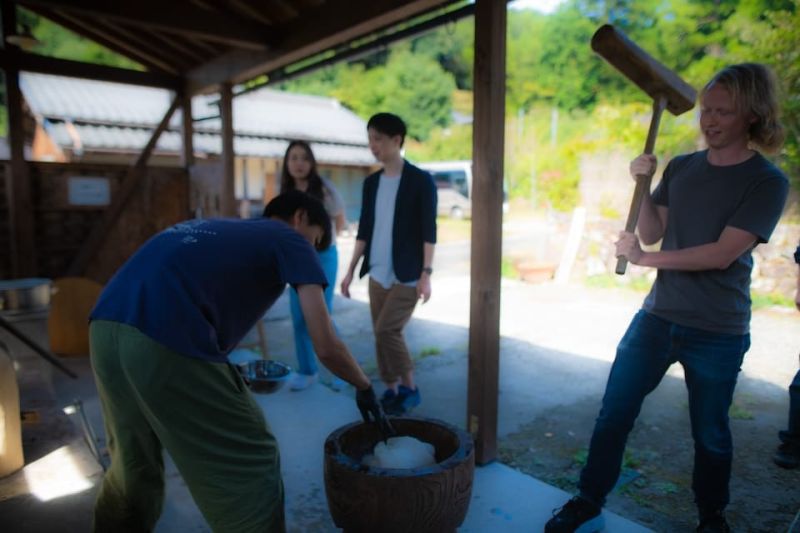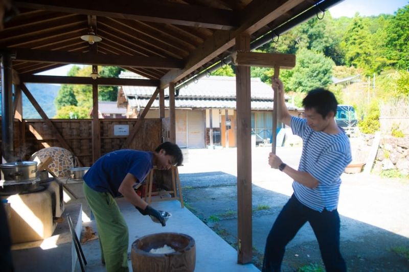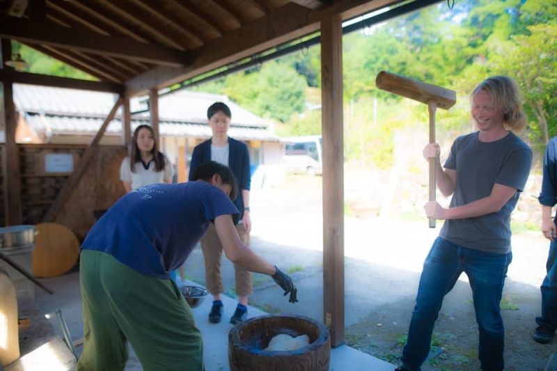 A day trip to Takashima Makino Town, on the northern tip of Lake Biwa, to enjoy mochi pounding, barbecuing, and local root vegetable stew in a 150-year-old traditional house.